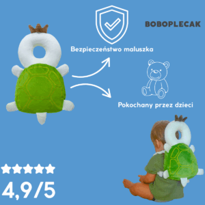 Po prawej: BoboPlecak w akcji ✅ – chroni główkę, działa jak miękka poduszka, która przejmuje uderzenie 💥